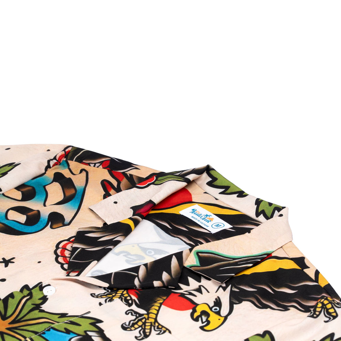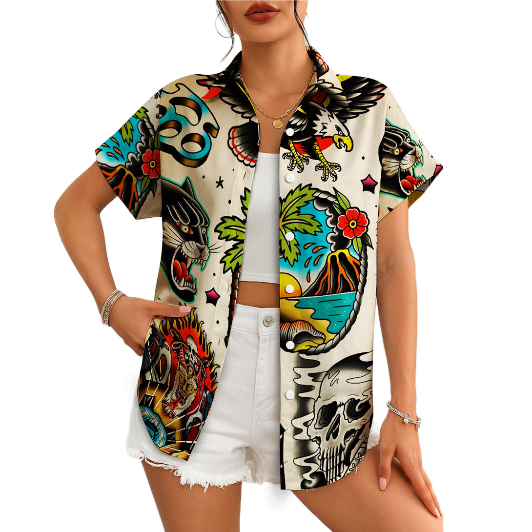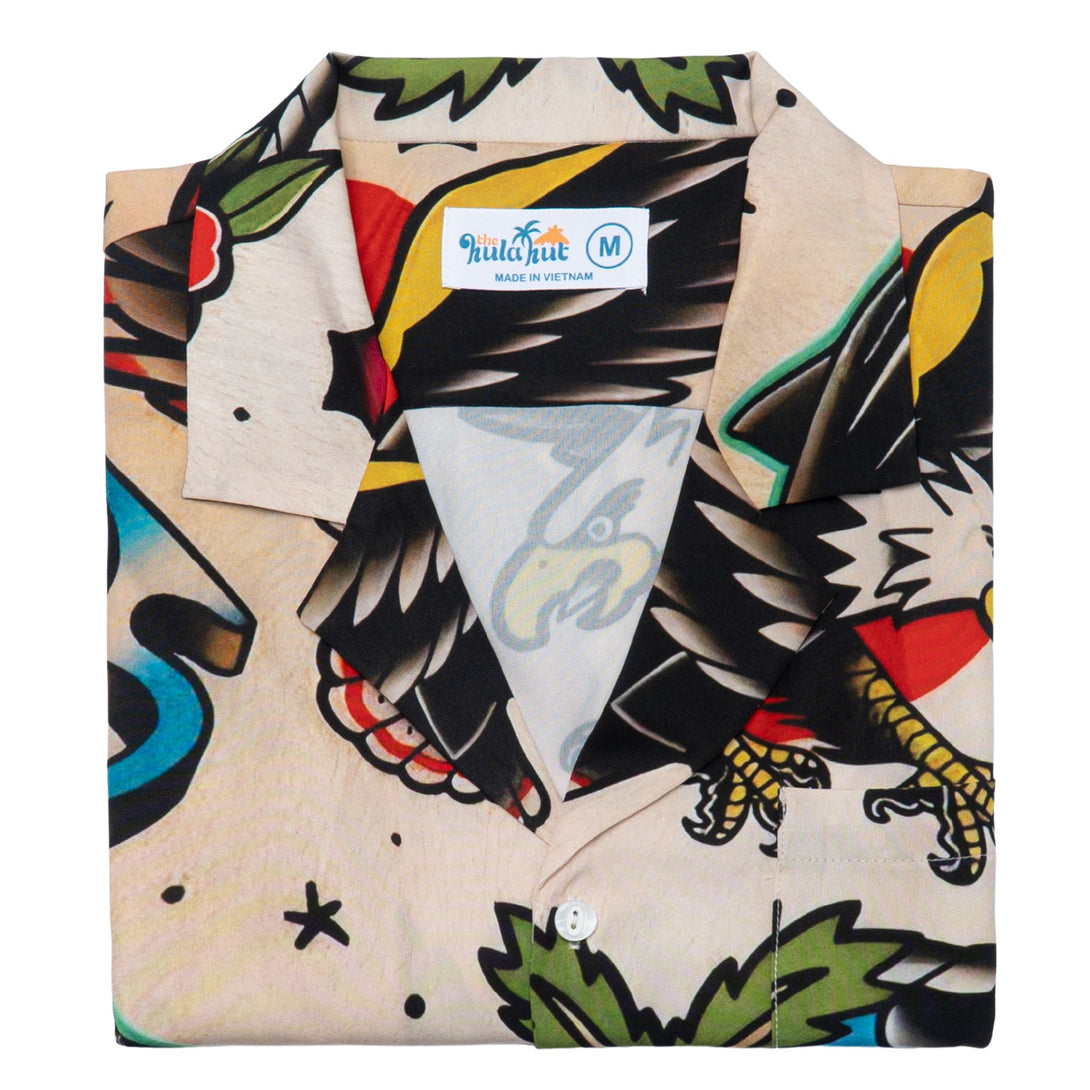 Express your rebellious side with this vintage-inspired Hawaiian shirt featuring classic tattoo artwork including skulls, eagles, and traditional American imagery. Perfect for music festivals, biker gatherings, and alternative summer events, this edgy design appeals to rockabilly enthusiasts. Ideal for men who embrace vintage culture and want to showcase their alternative style with tropical comfort.