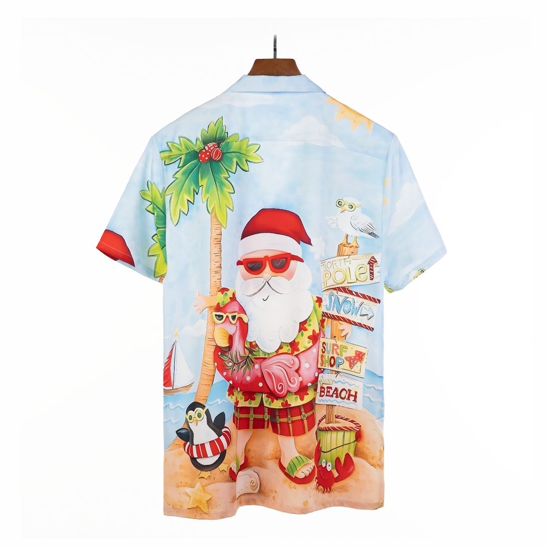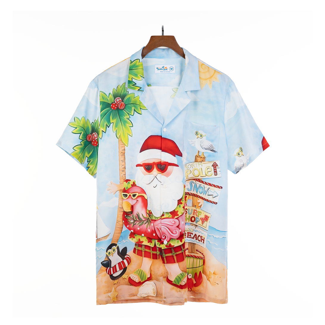 Combine Christmas cheer with beach vibes in this delightful Santa-themed Hawaiian shirt featuring tropical holiday scenes with palm trees and beach elements. Perfect for summer Christmas celebrations, holiday cruises, and festive beach parties. Ideal for men who want to celebrate Christmas in true Australian style while maintaining that relaxed tropical atmosphere.