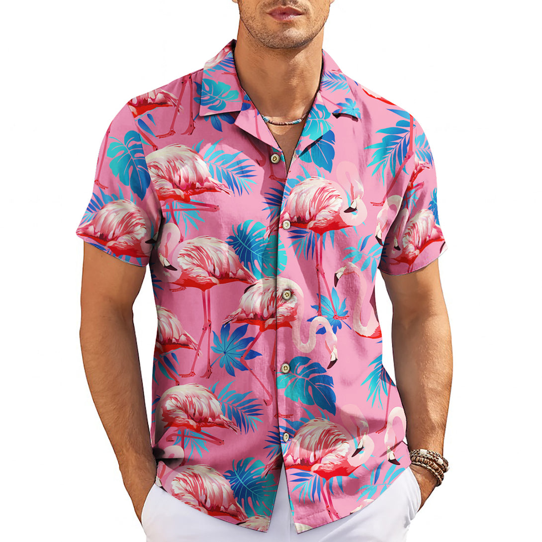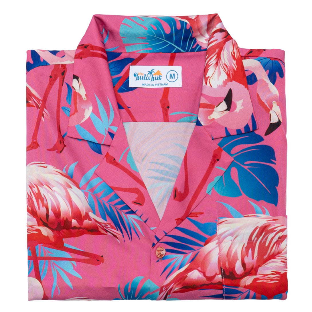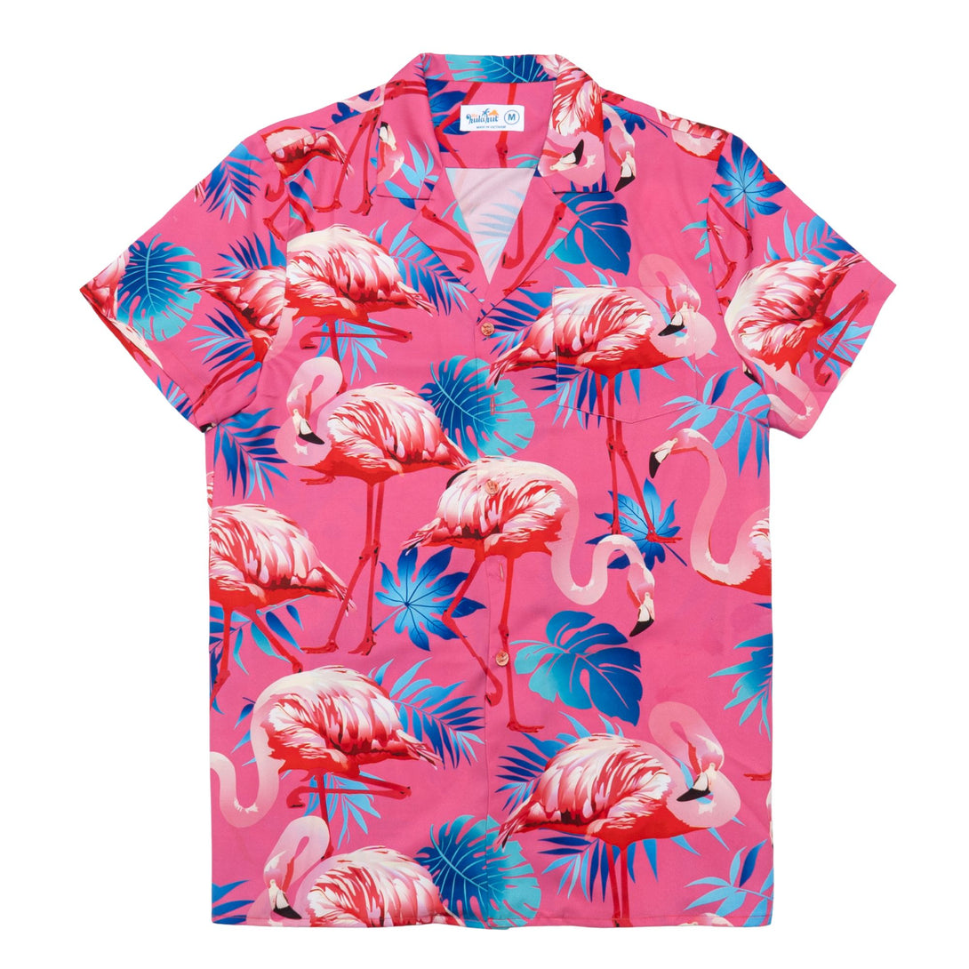 Embrace tropical elegance with this sophisticated pink flamingo Hawaiian shirt featuring graceful bird prints on a stylish background. Perfect for beach resorts, summer weddings, and tropical getaways, this refined design offers both comfort and style. Ideal for fashion-forward men who appreciate distinctive prints while maintaining a polished appearance for vacation activities.