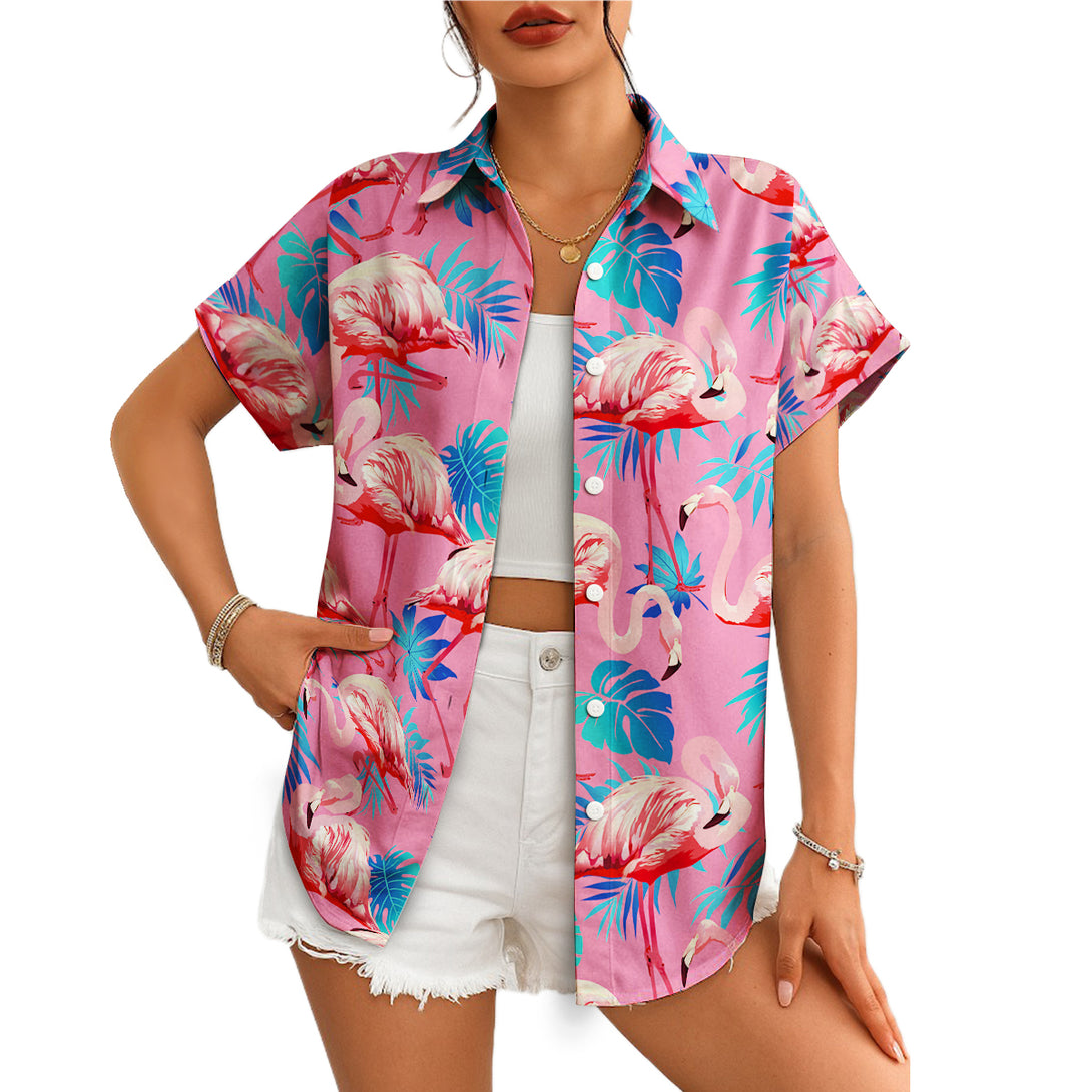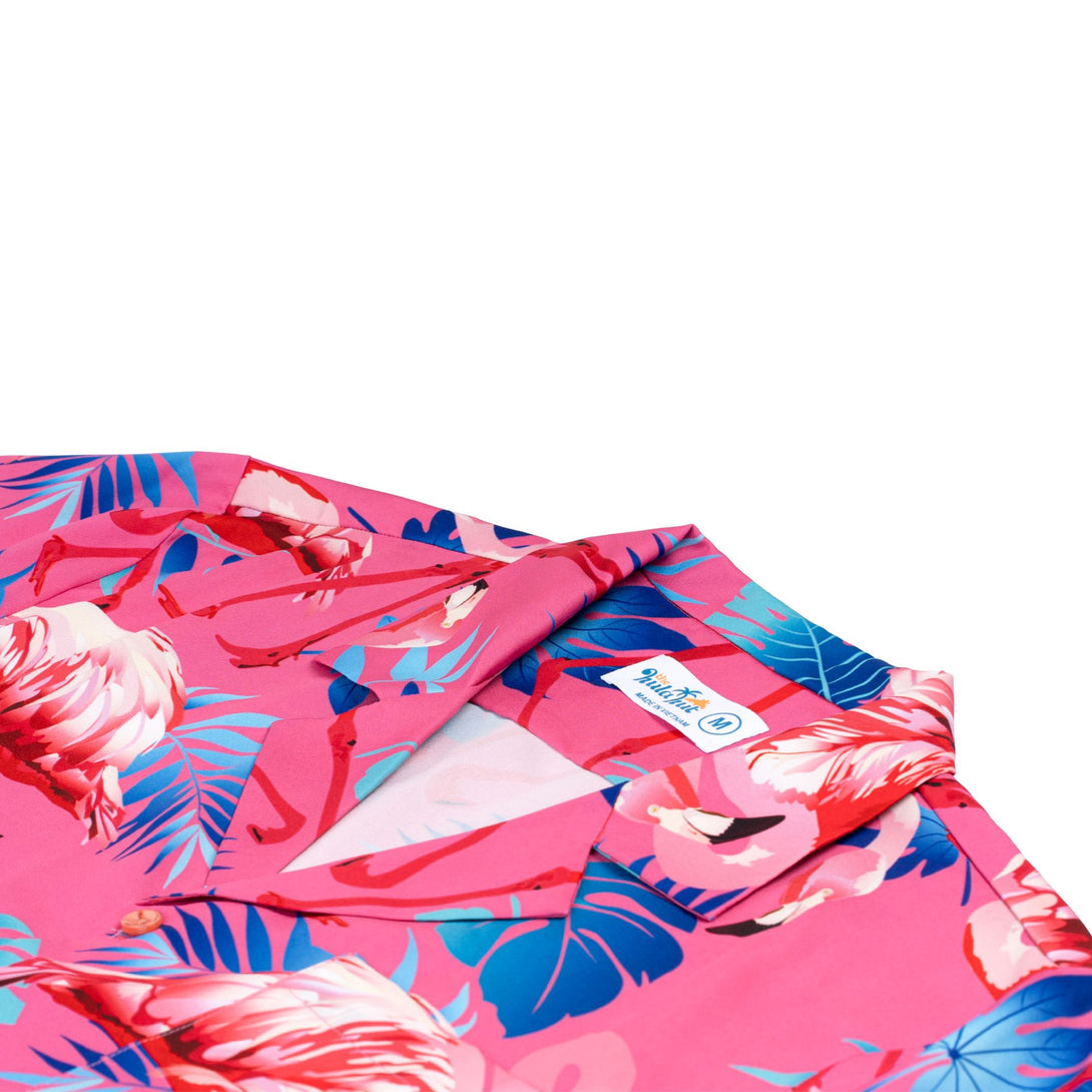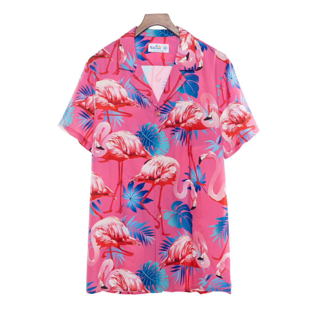 Embrace tropical elegance with this sophisticated pink flamingo Hawaiian shirt featuring graceful bird prints on a stylish background. Perfect for beach resorts, summer weddings, and tropical getaways, this refined design offers both comfort and style. Ideal for fashion-forward men who appreciate distinctive prints while maintaining a polished appearance for vacation activities.
