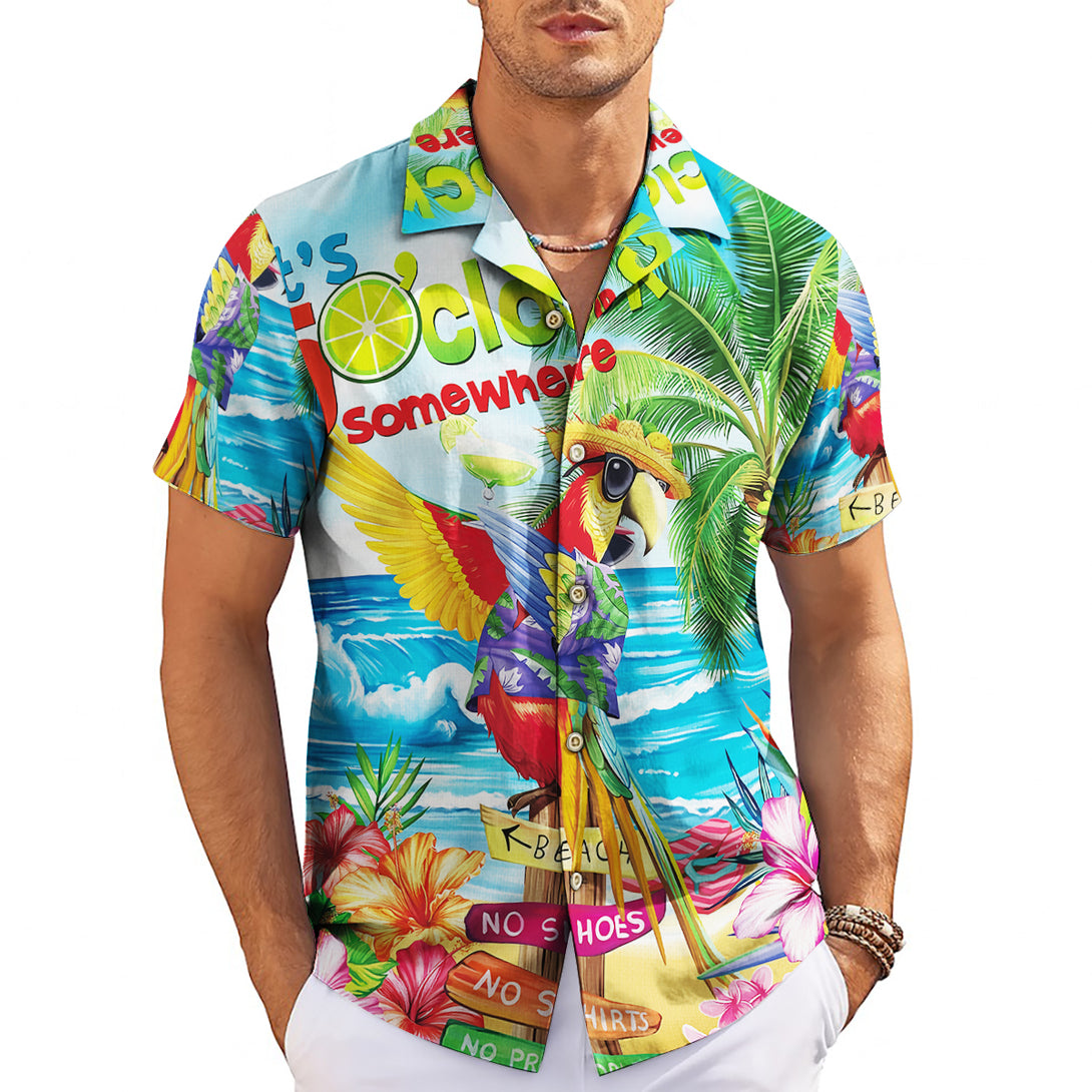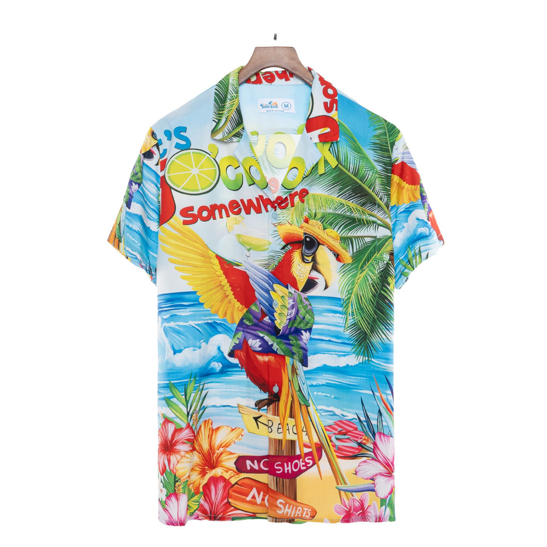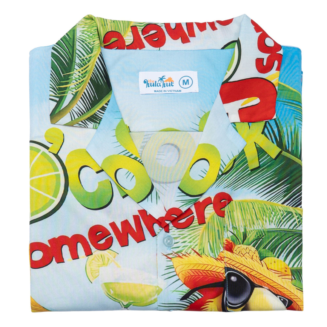 Embrace the ultimate beach party vibe with this vibrant Hawaiian shirt featuring tropical parrots and beach scenes with relaxed messaging. Perfect for summer festivals, beachside gatherings, and vacation adventures, this energetic design captures the spirit of island living. Ideal for social men who love making new friends and want to project fun-loving energy wherever they go.