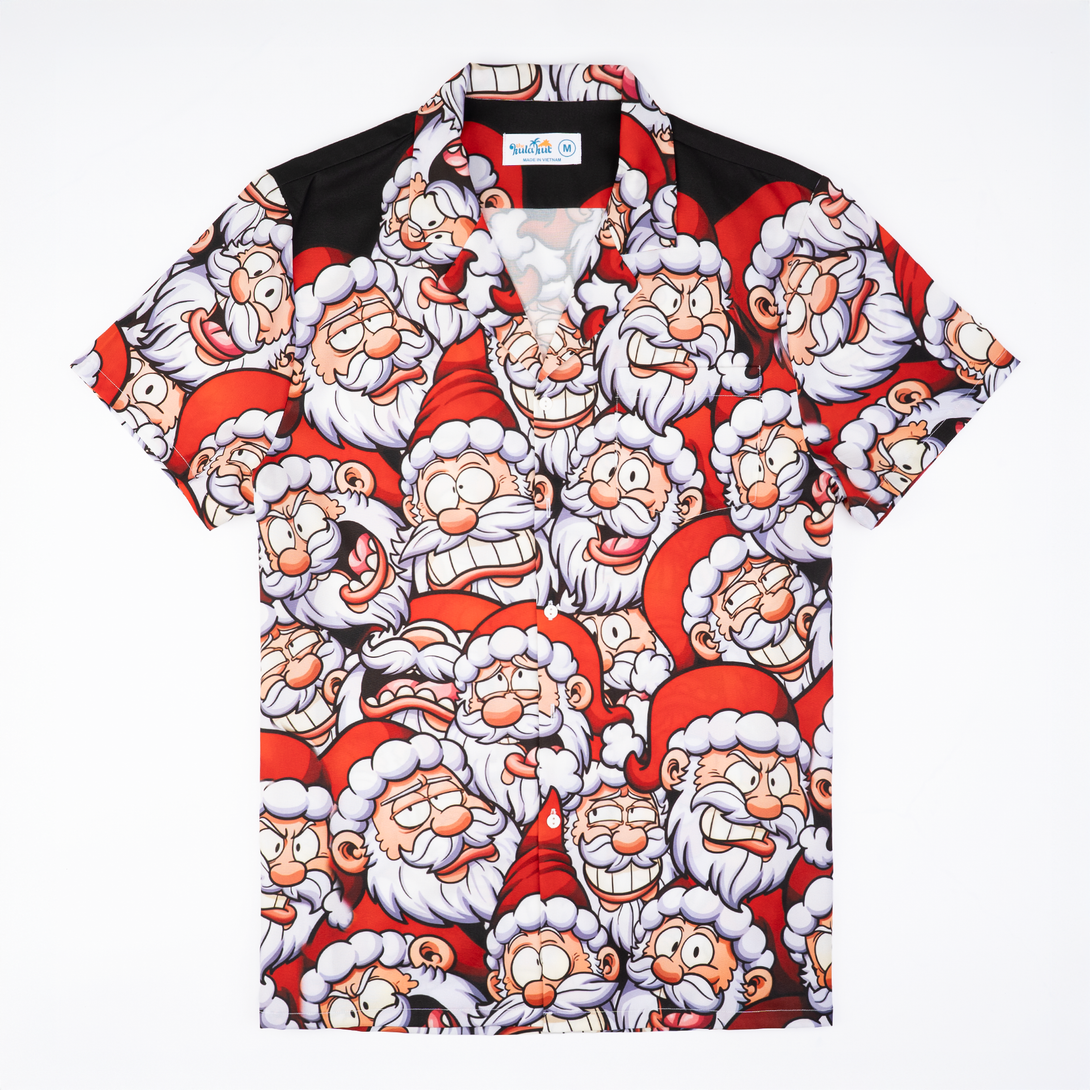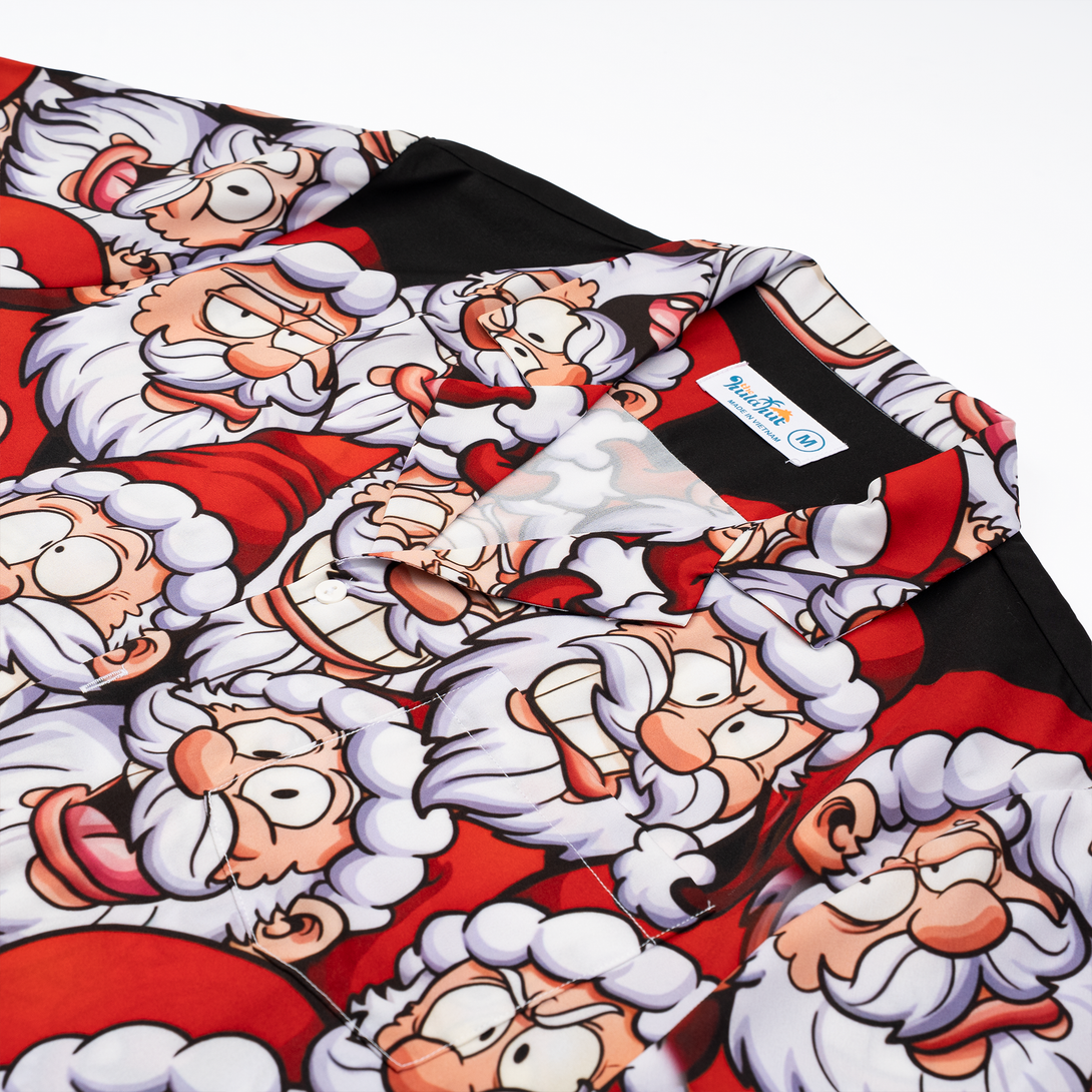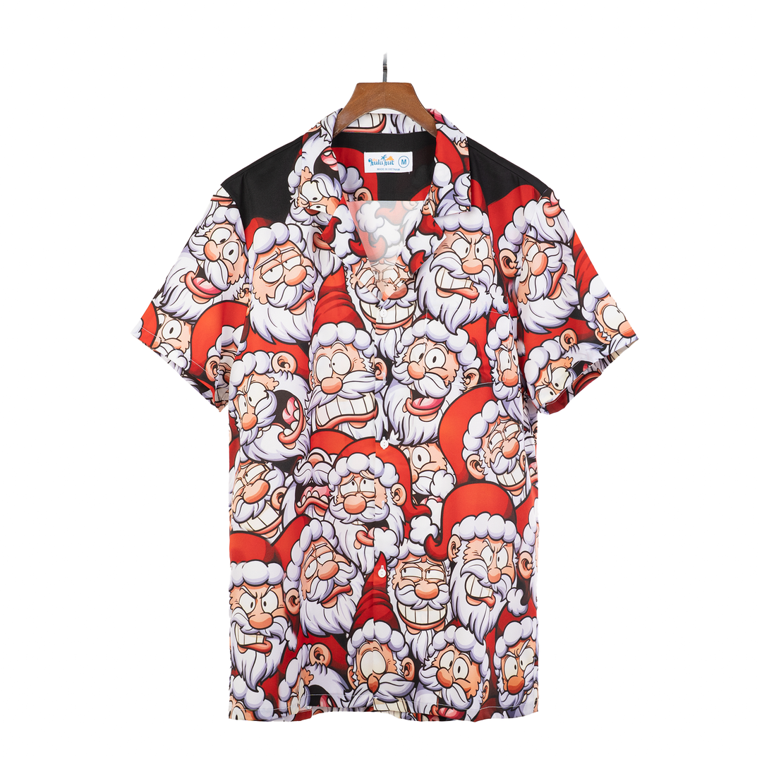 Featuring multiple cheerful Santa faces in a playful pattern, this Hawaiian shirt brings humour and holiday cheer to any summer celebration. Perfect for Christmas in July parties, holiday gatherings, or casual festive occasions. An excellent gift for those who enjoy quirky holiday fashion and want to spread Christmas joy year-round.