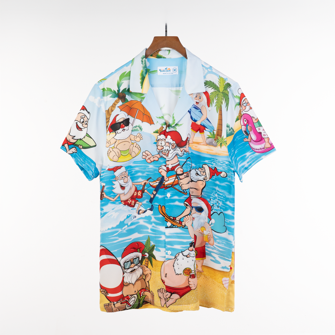 Experience Christmas in paradise with this delightful Hawaiian shirt featuring Santa enjoying beach activities and tropical holiday scenes. Perfect for Australian summer Christmas celebrations, holiday cruises, and festive beach parties, this cheerful design combines holiday spirit with island vibes. Ideal for men who want to celebrate Christmas in true tropical style while maintaining festive cheer.