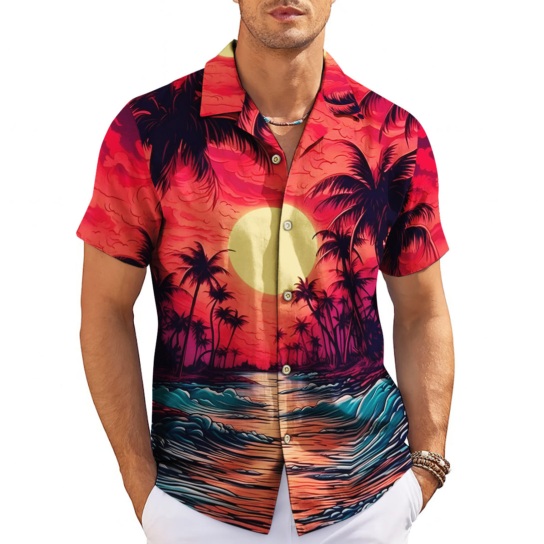 Experience paradise with this stunning sunset palm tree Hawaiian shirt featuring warm gradient colours and silhouetted tropical scenery. Perfect for romantic dinners, sunset cocktails, and beach walks, this classic design captures the essence of tropical evenings. Ideal for men seeking sophisticated vacation wear that transitions beautifully from day to evening activities.