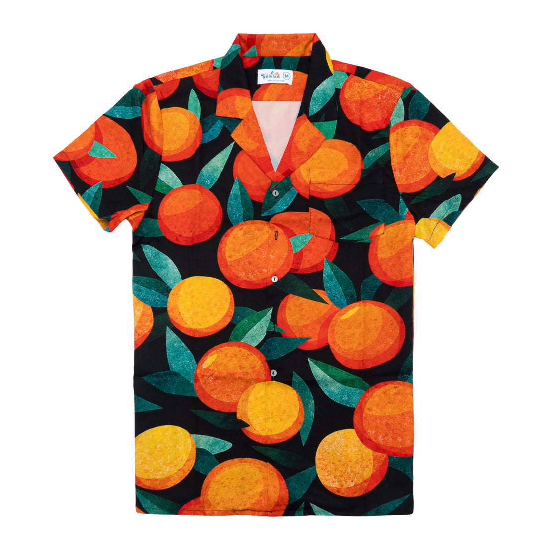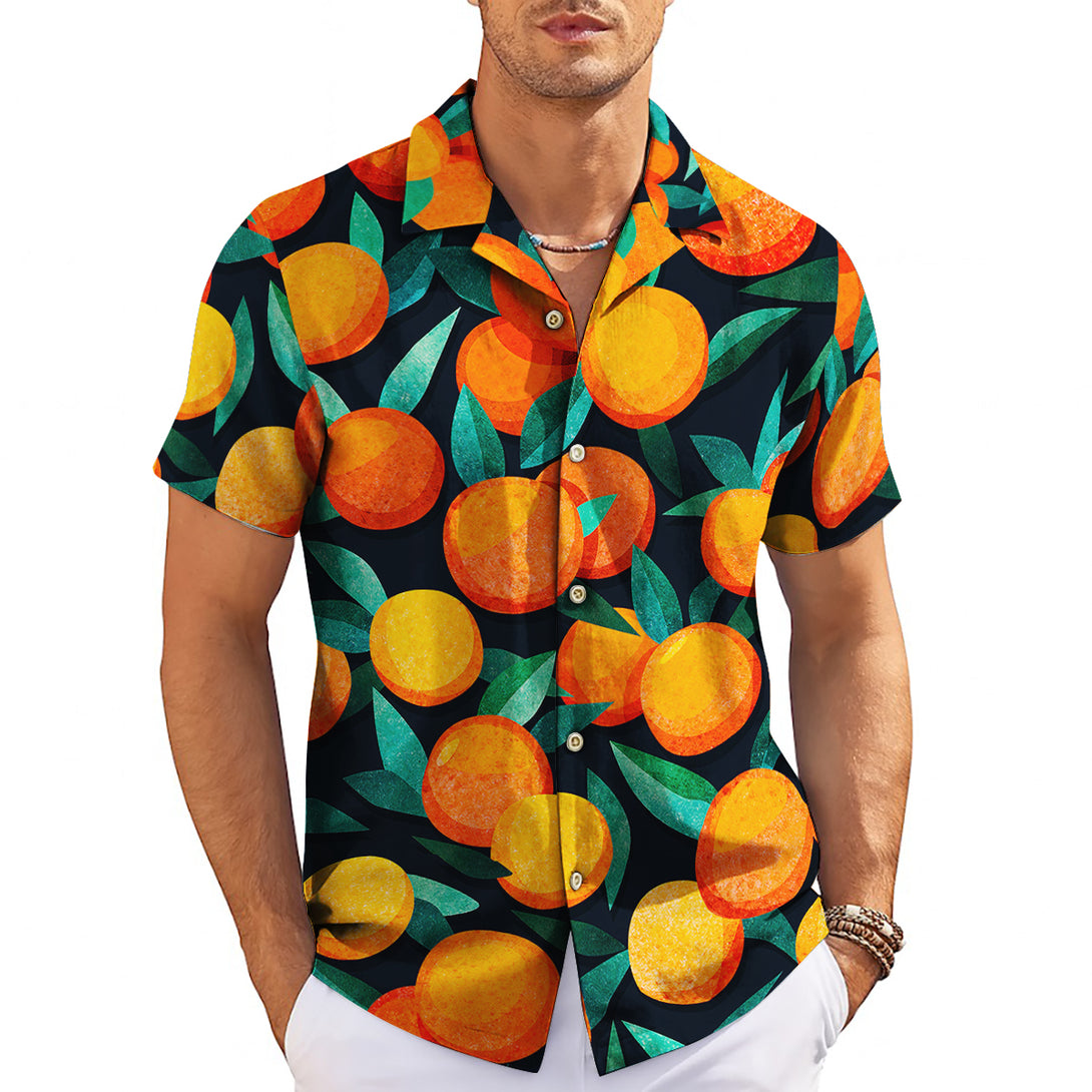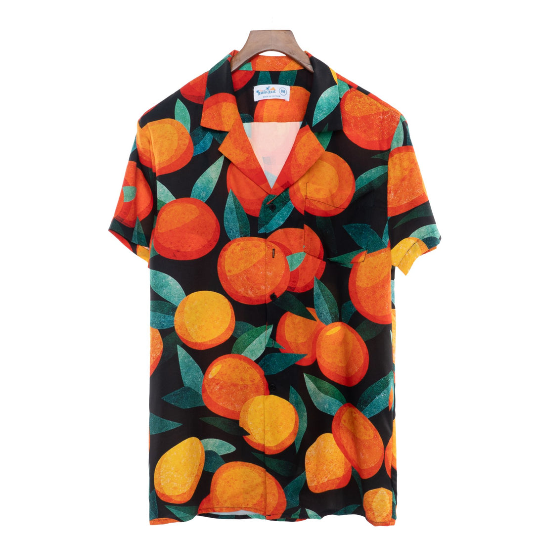 Embrace fresh tropical energy with this vibrant orange Hawaiian shirt featuring citrus fruit prints that radiate summer sunshine and vitamin-packed vitality. Perfect for farmers markets, outdoor brunches, and fresh air activities, this cheerful design embodies healthy tropical living. Ideal for optimistic men who love bright colours and want to project positive energy through their summer wardrobe choices.